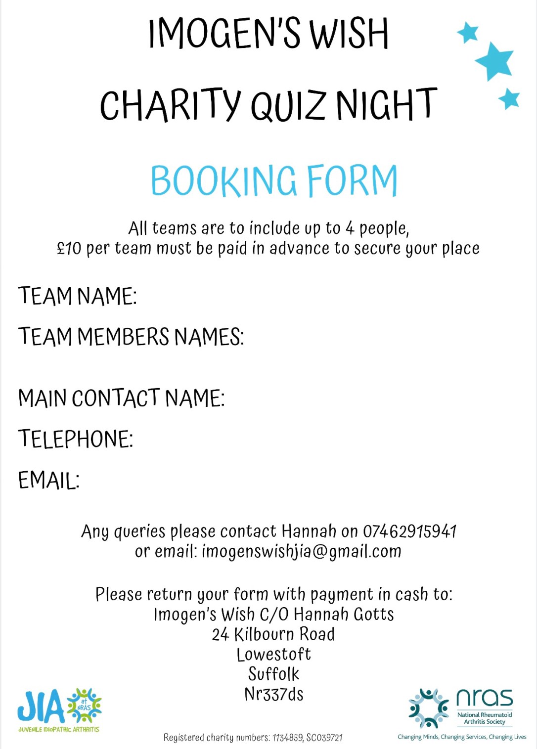 A while ago after doing our family fun day back in August our family friend Malcolm suggested holding an Imogen’s Wish Quiz Night. After advertising the event and slowly collating teams, Friday 23rd November we had our Quiz night and what a fab night it was.